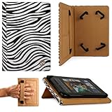 BLACK WHITE Zebra Hard Cover Portfolio Jacket Mary Case, Stand Alone, Lightweight, Protective Slimline Sturdy, Flip Folio Book Style Design For Amazon Kindle Fire 7" LCD Display, Wi-Fi Android Tablet